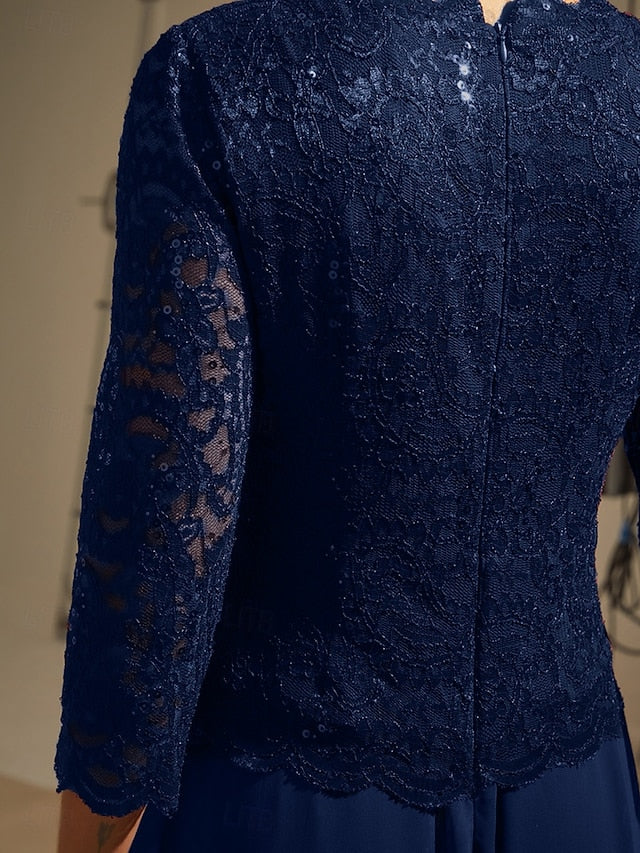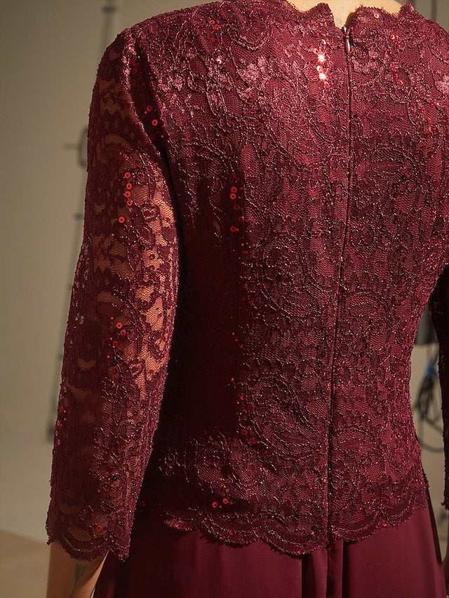 Dresses Type: Chiffon Dress, Fabric: Polyester, Gender: Women's, Design: Lace, Sequins, Occasion: Wedding Guest, Evening Party, Size Suggestion: standard size, select your usual size, Style: Elegant, Dress Length Type: Maxi Dress, Neckline: Crew Neck, Sleeve Length: 3/4 Length Sleeve, Elasticity: Micro-elastic, Look After Me: Hand wash, Pattern: Solid Color, Season: Winter, Fall, Spring,