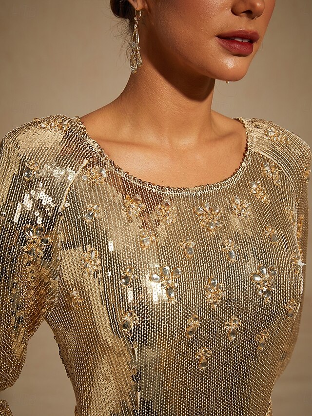 Dresses Type: Trumpet Mermaid Dress, Sheath Dress, Fabric: Polyester, Gender: Women's, Design: Crystal, Beaded, Sequins, Occasion: Party, Cocktail Party, Evening Party, Style: Elegant, Dress Length Type: Maxi Dress, Neckline: Crew Neck, Sleeve Length: Long Sleeve, Elasticity: Micro-elastic, Look After Me: Wash with similar colours, Machine wash, Pattern: Solid Color, Season: Winter, Fall, Spring,