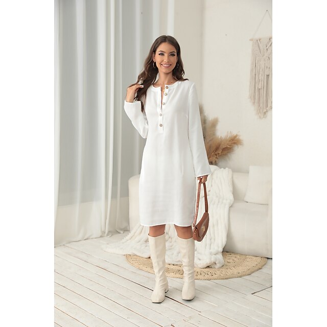 Women's Midi Dress Faux Cotton Linen Shirt Dress Casual