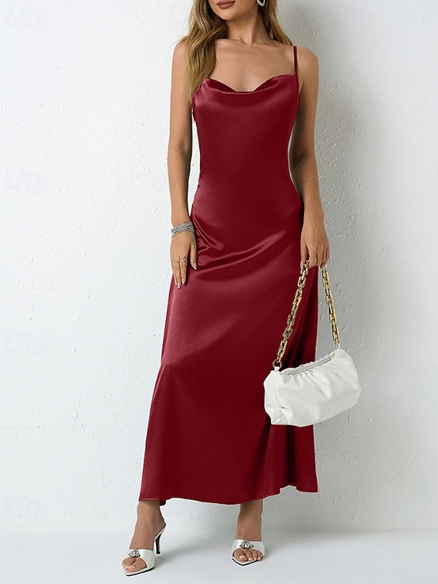 Dresses Type: Cocktail Dress, Slip Dress, Satin Dress, Party Dress, Fabric: Polyester, Gender: Women's, Design: Backless, Occasion: Evening Party, Party, Outdoor, Style: Fashion, Modern, Fit Type: Regular Fit, Dress Length Type: Midi Dress, Neckline: Straps, Sleeve Length: Sleeveless, Elasticity: Micro-elastic, Look After Me: Hand wash, Pattern: Plain, Season: Fall, Spring,