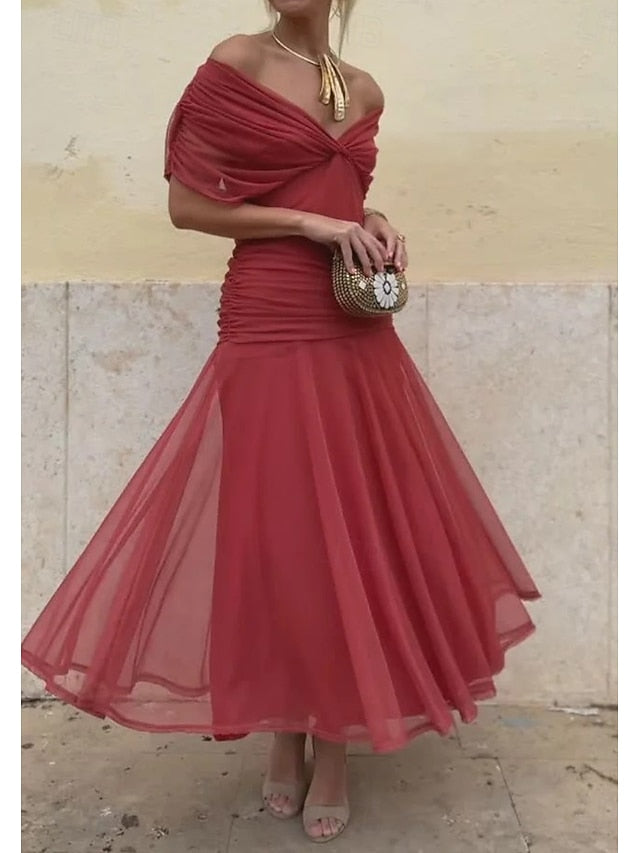 Dresses Type: Sheath Dress, Fabric: Chiffon, Gender: Women's, Design: Ruched, Occasion: Beach, Going out, Party, Style: Vacation, Birthday, Print Type: non-printing, Fit Type: Regular Fit, Dress Length Type: Midi Dress, Neckline: V Neck, Sleeve Length: Short Sleeve, Elasticity: Inelastic, Look After Me: Machine wash, Pattern: Solid Color, Season: Summer, Spring,