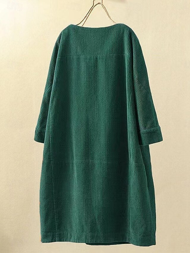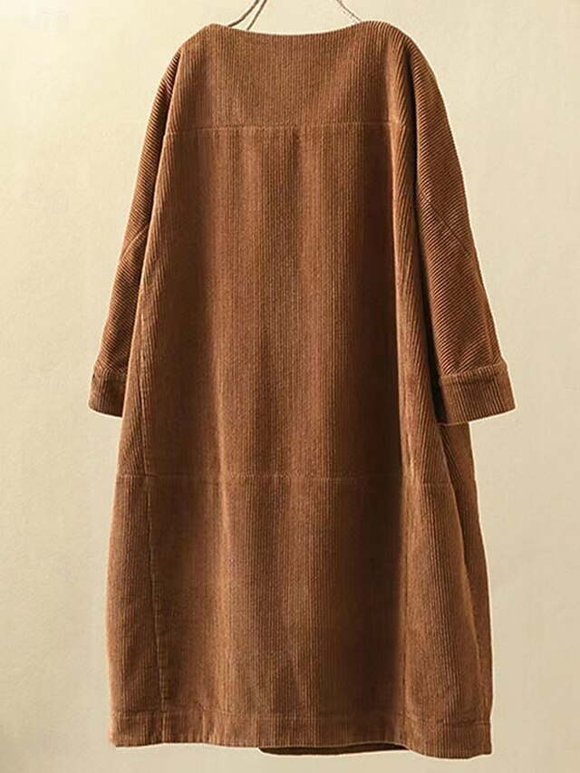 Dresses Type: Shift Dress, Fabric: Polyester, Gender: Women's, Design: Pocket, Occasion: Daily, Style: Casual, Fit Type: Regular Fit, Dress Length Type: Midi Dress, Neckline: Crew Neck, Sleeve Length: 3/4 Length Sleeve, Elasticity: Micro-elastic, Look After Me: Wash with similar colours, Machine wash, Pattern: Plain, Season: Winter, Fall, Spring,