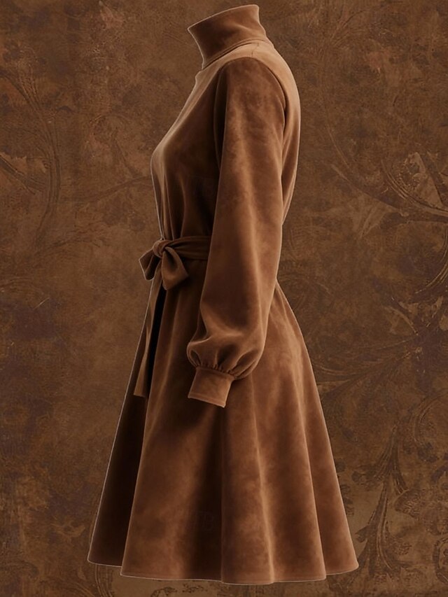 Dresses Type: Hoodie Dress, Casual Dress, Fabric: Polyester, Gender: Women's, Design: With Belt, Zipper, Patchwork, Occasion: Daily, Going out, Weekend, Style: Vintage, Fashion, Elegant, Fit Type: Regular Fit, Dress Length Type: Mini Dress, Neckline: Turtleneck, Sleeve Length: Long Sleeve, Sleeve Type: Lantern Sleeve, Elasticity: Micro-elastic, Look After Me: Machine wash, Pattern: Plain, Season: Winter, Fall, Spring,
