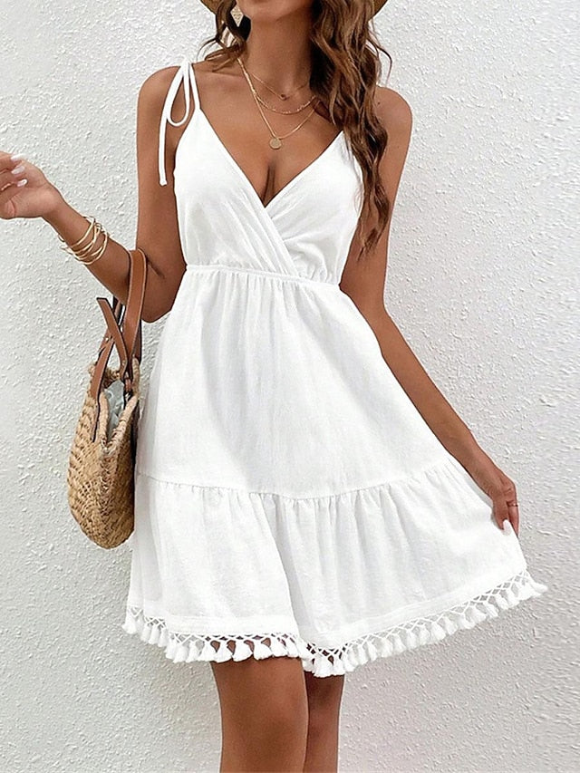 Women's Mini Dress White Dress Graduation Dress Casual