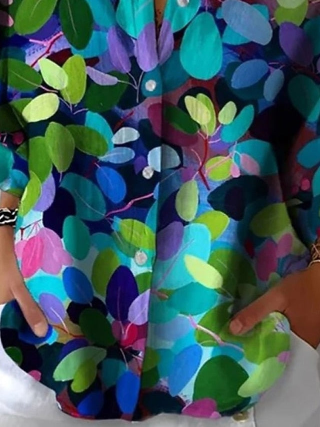Fabric: Polyester, Gender: Women's, Tops Type: Shirt, Design: Print, Buttons, Occasion: Daily, Work, Style: Casual, Category: Long Sleeve Shirt, Fit Type: Regular Fit, Neckline: Shirt Collar, Sleeve Length: Long Sleeve, Elasticity: Inelastic, Look After Me: Machine wash, Top Length: Regular Tops, Pattern: Floral, Season: Winter, Fall, Spring,